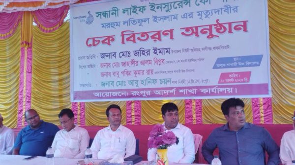 লালমনিরহাট প্রতিনিধি : সন্ধানী লাইফ ইন্স্যুরেন্স কোম্পানি লিমিটেড এর রংপুর আদর্শ শাখার মৃত্যুদাবির চেক প্রদান অনুষ্ঠিত হয়েছে।আজ ৮ই আগস্ট ১২ ঘটিকার সময় সন্ধানী লাইফ ইন্স্যুরেন্স কোম্পানি লিমিটেড, এর আয়োজনে লালমনিরহাট