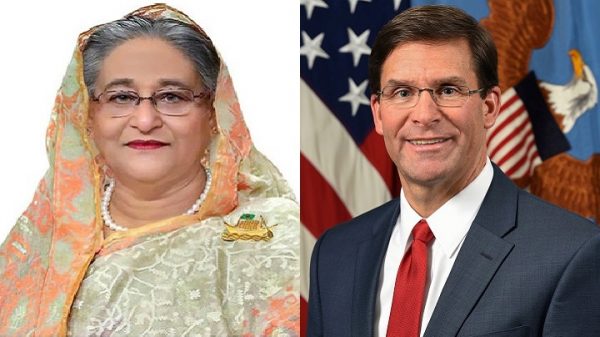 প্রধানমন্ত্রী শেখ হাসিনাকে টেলিফোন করে রোহিঙ্গা সমস্যার সমাধানের বিষয়ে কথা বলেছেন মার্কিন যুক্তরাষ্ট্রের প্রতিরক্ষামন্ত্রী ড. মার্ক টি অ্যাসপার। শুক্রবার সন্ধ্যায় তিনি শেখ হাসিনাকে ফোন করেন। এসময় রোহিঙ্গা সমস্যার শান্তিপূর্ণ সমাধানে